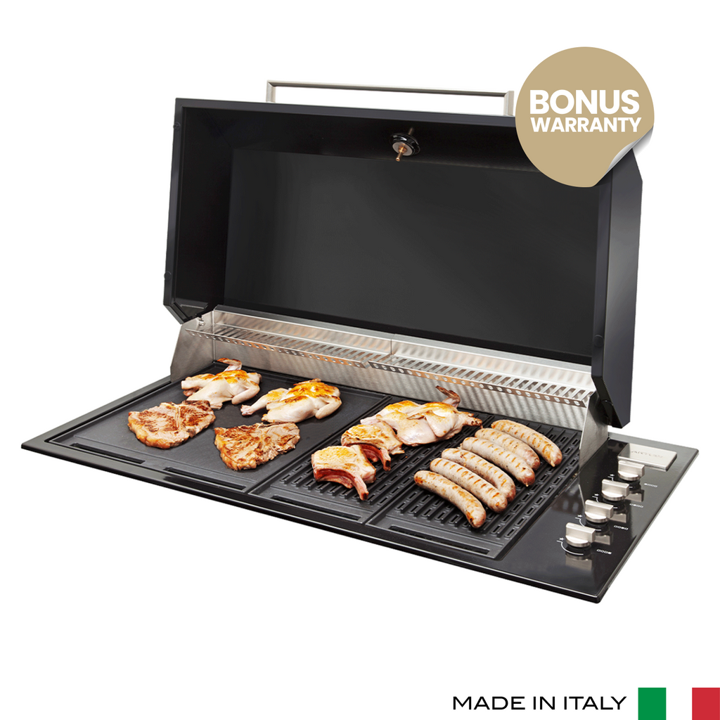 The Artusi Alfresco Range Gloss Black Built In BBQ is designed to be a focal point in your alfresco area by providing unique features to enhance your backyard grilling experience.