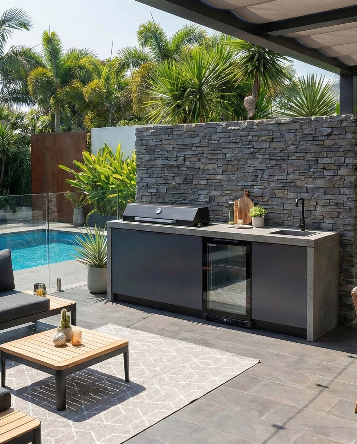 - High quality, weatherproof cabinetry and benchtop