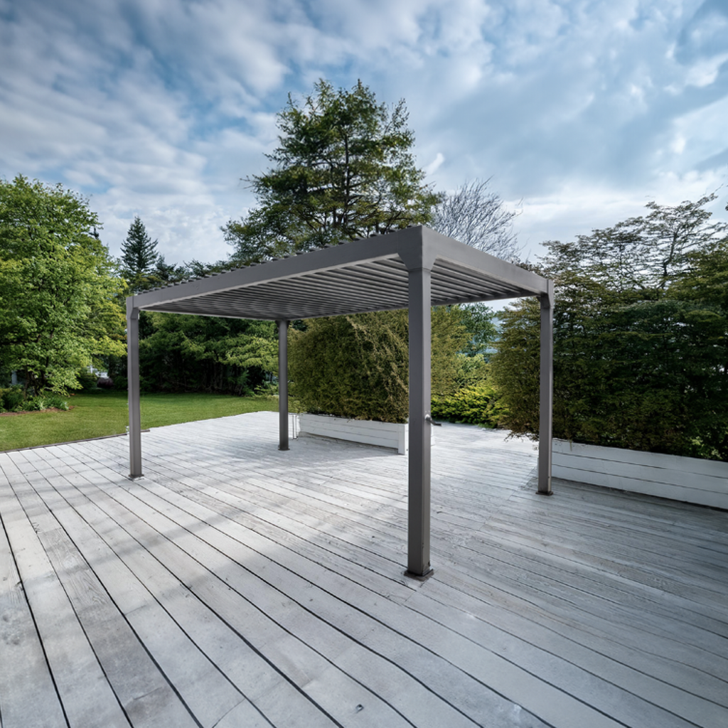 - Sleek and Modern Design: The Solaire adds an elegant touch to your outdoor decor. The adjustable lourves also allow for a customisable experience, offering from sunlight or shade as required.