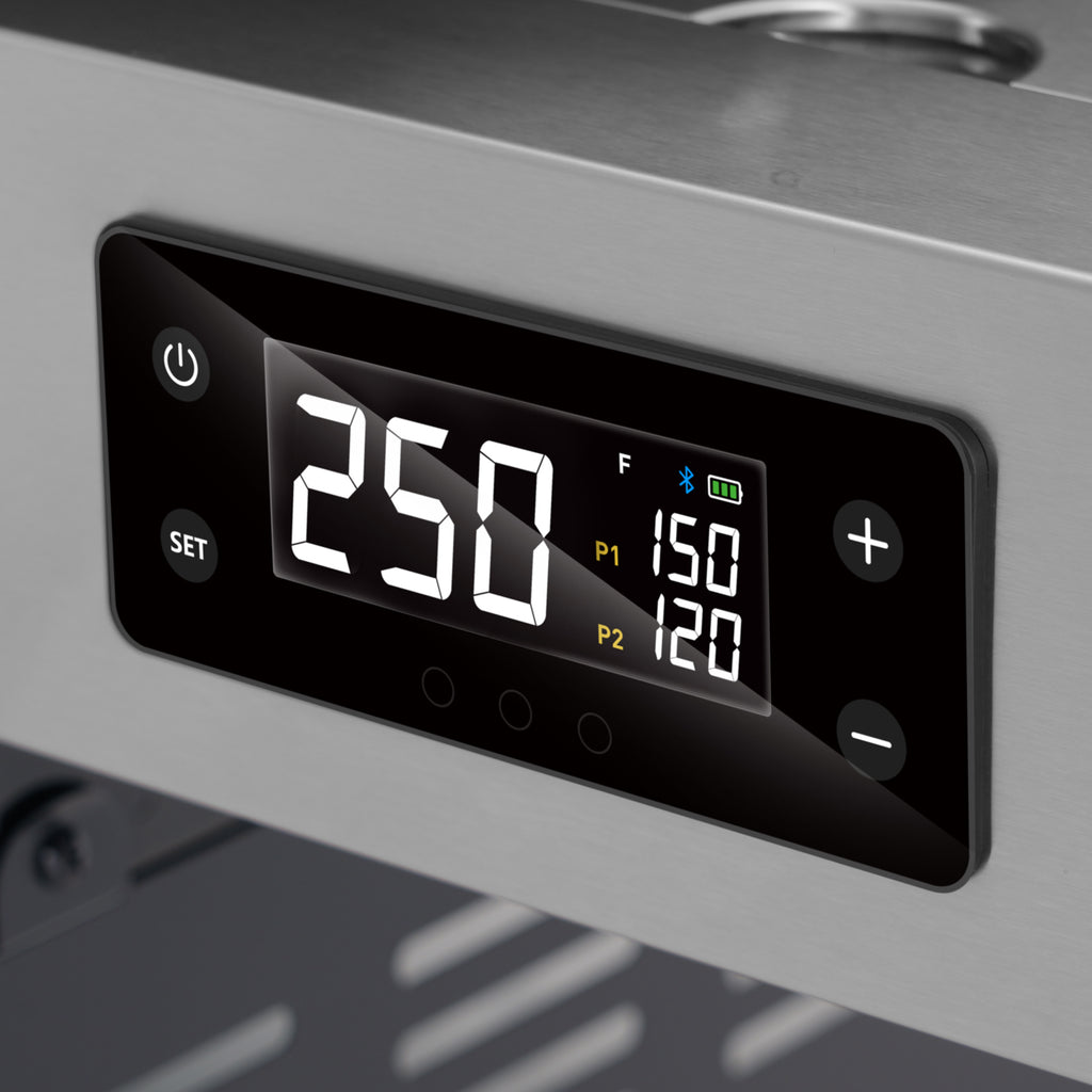 - Battery-powered digital control with two plug-in probes on right shelf fascia