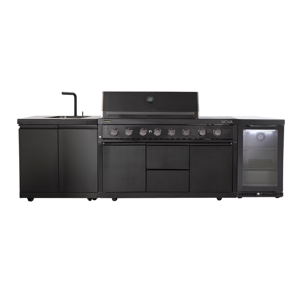 Introducing the refreshed Gasmate Nova MK2 range. We've added flame failure safety technology, which automatically cuts off the gas if the flame goes out, offering added peace of mind. Additional new features include upgraded sintered stone tops, new sink module with integrated chopping board and rotisserie kit & charcoal tray now included with all BBQ modules.